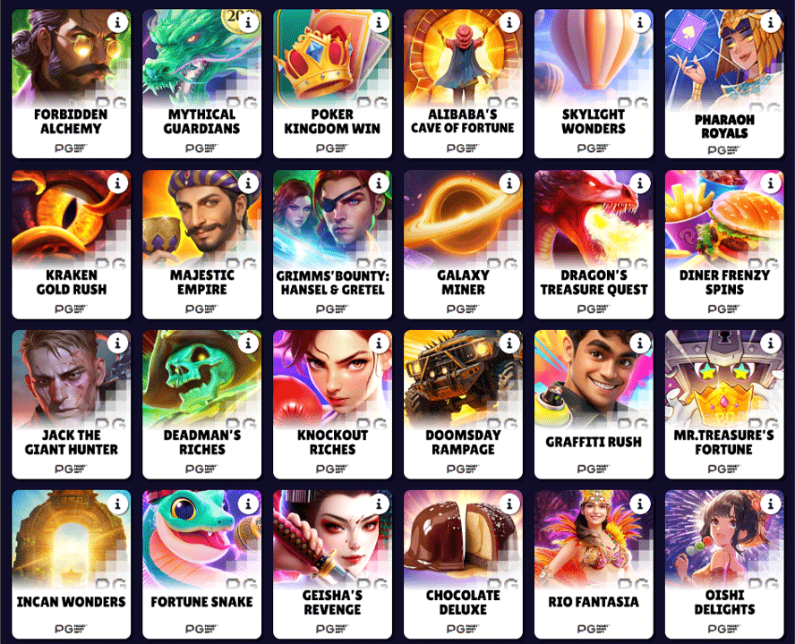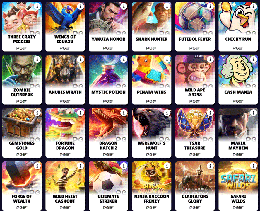 อีกค่ายที่ได้รับความนิยมไม่แพ้กันคือ PG Soft ซึ่งโดดเด่นด้านงานภาพกราฟิกคุณภาพสูงและการออกแบบเกมในลักษณะคล้ายเกมมือถือสมัยใหม่ ทำให้การเล่นมีความลื่นไหลและเข้าถึงง่าย เกมส่วนใหญ่มีเนื้อเรื่อง สีสันสดใส และเอฟเฟกต์ที่ดึงดูดสายตา เหมาะทั้งกับผู้เล่นหน้าใหม่และผู้เล่นที่ต้องการประสบการณ์ที่แตกต่างจากสล็อตแบบดั้งเดิม